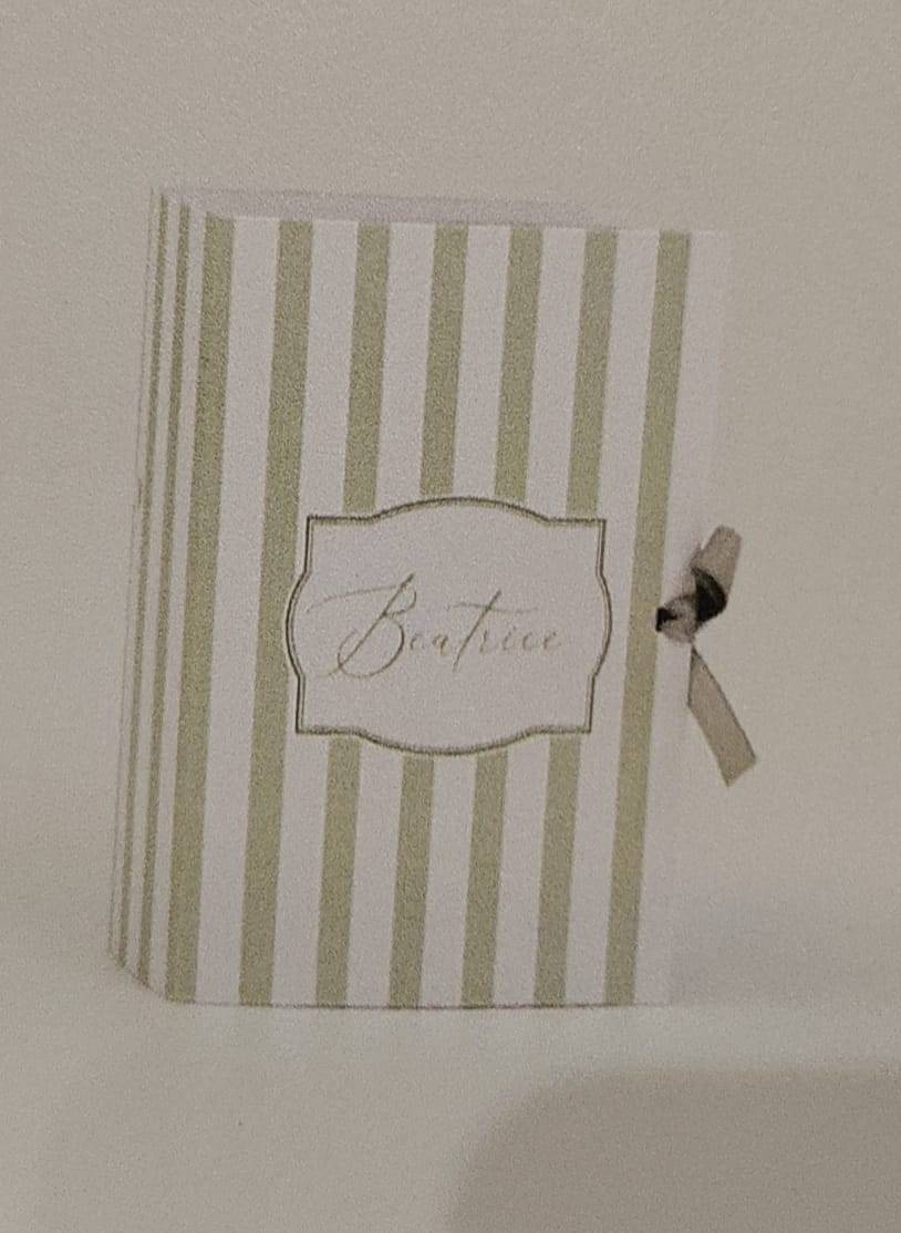 Scatoline in cartoncino pregiato gr. 200 personalizzata misura cm. 7 x 10 p.3 arricchita con nastro