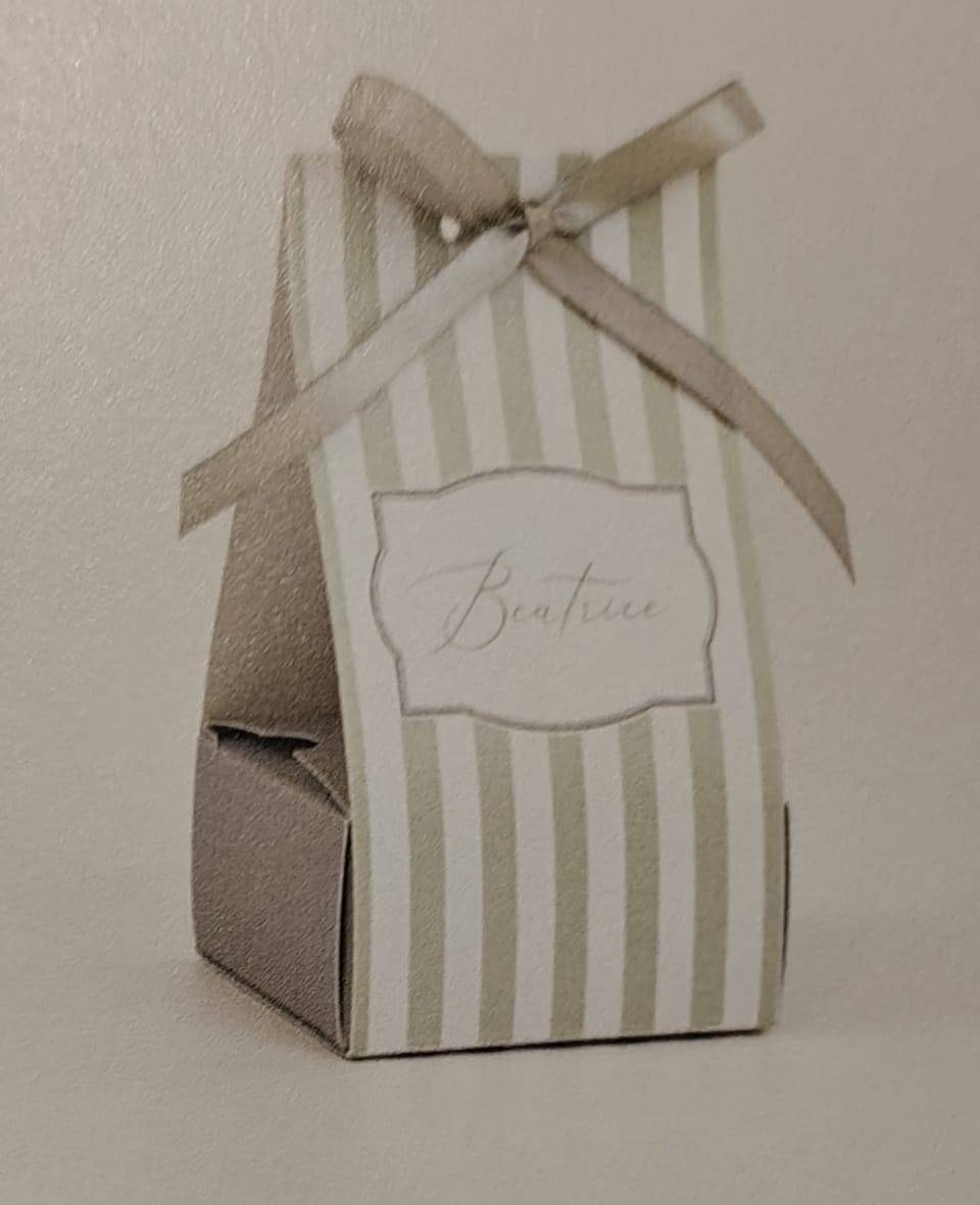 Scatoline in cartoncino pregiato personalizzata misura cm. 5 x 9,5 p.4 arricchita con nastro