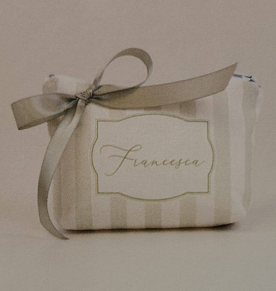 Bustina con cerniera di cotone prima comunione stampato personalizzato con il nome cm. 15 x 10 ORDINE MINIMO 20 PEZZI