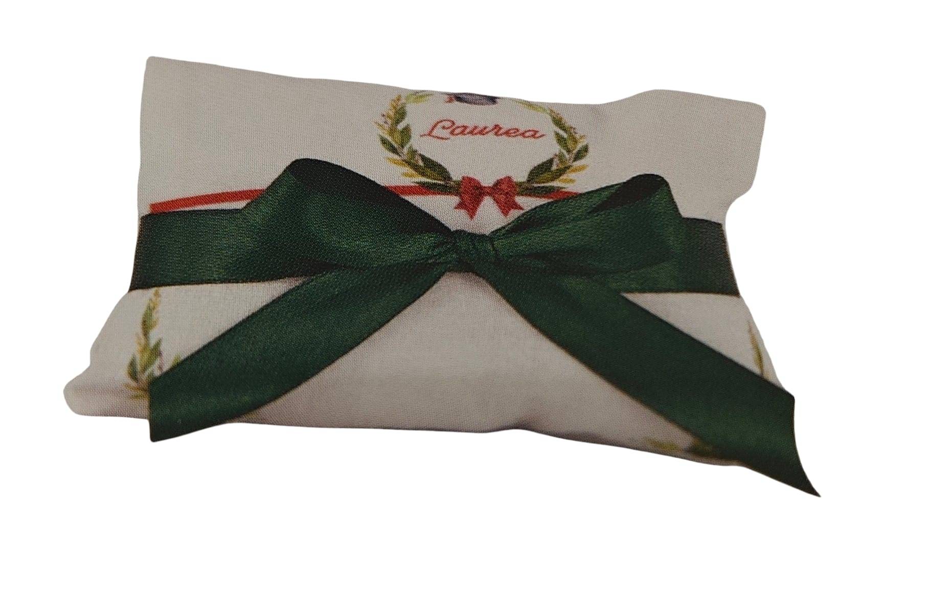Bustina di cotone laurea stampato personalizzato con il nome cm. 12 x 8 x 4,5 ORDINE MINIMO 20 PEZZI