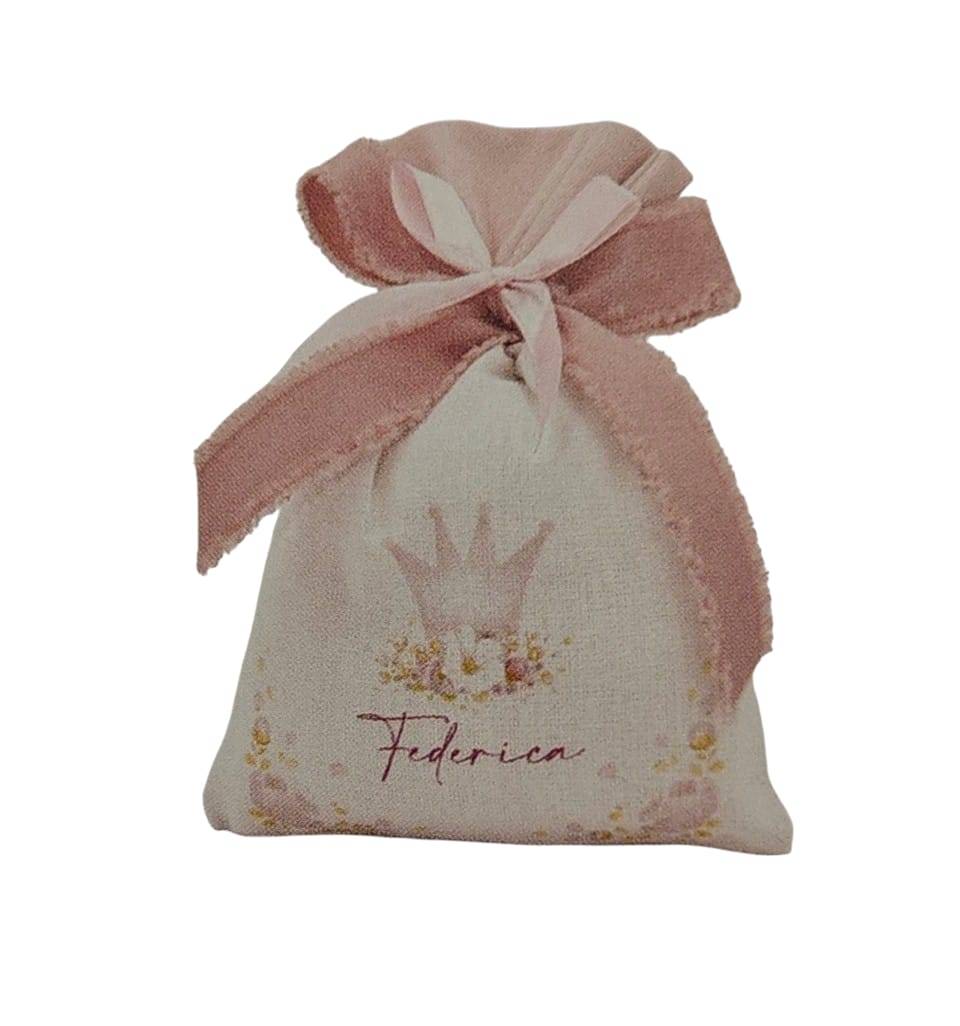 Sacchetto di cotone stampato personalizzato con il nome cm. 12 x 15 ORDINE MINIMO 20 PEZZI