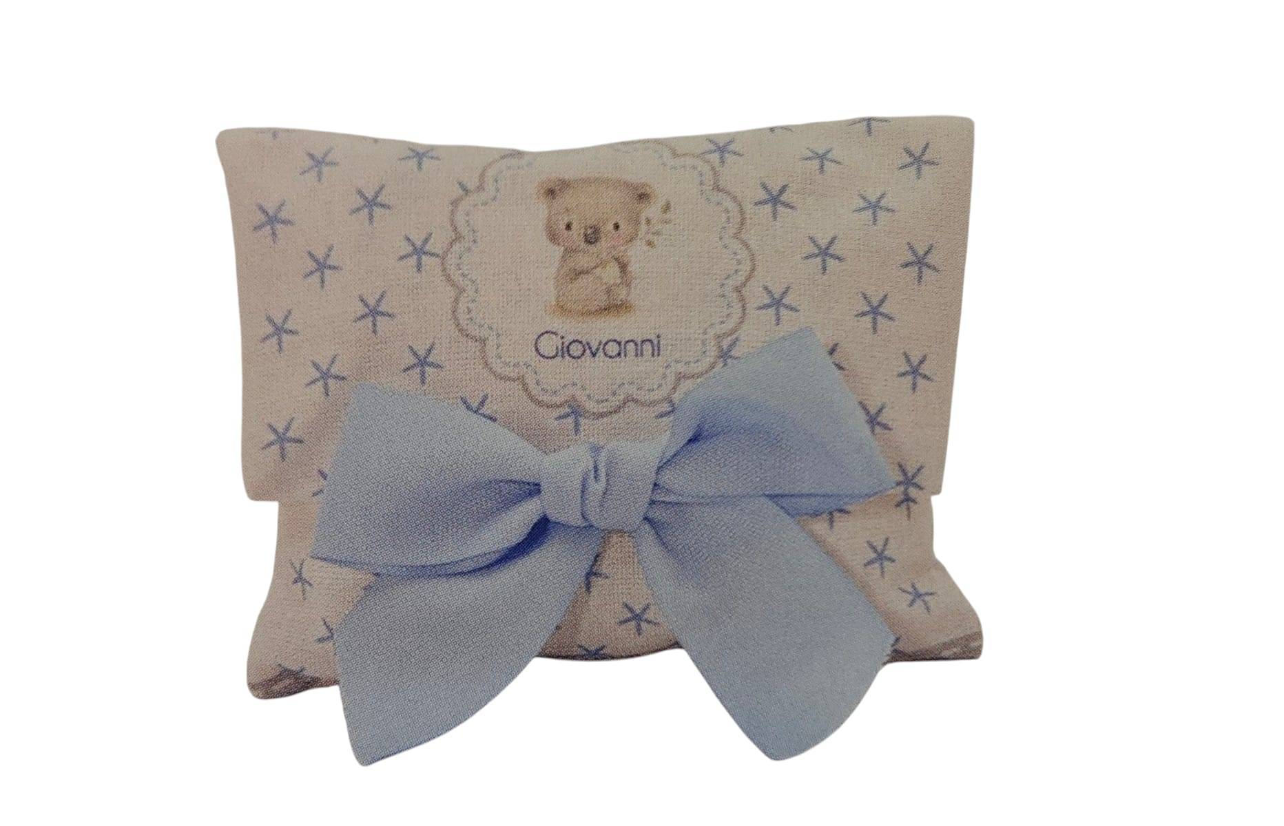 Bustina di cotone stampato personalizzato con il nome cm. 12 x 8,5x 3,5 ORDINE MINIMO 20 PEZZI