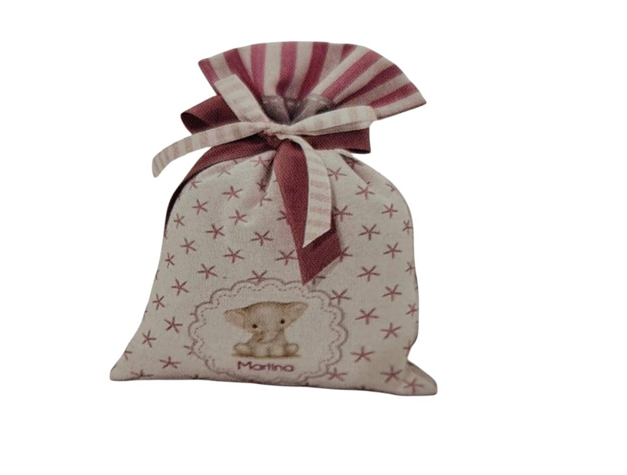 Sacchetto di cotone stampato personalizzato con il nome cm. 12 x 15 ORDINE MINIMO 20 PEZZI
