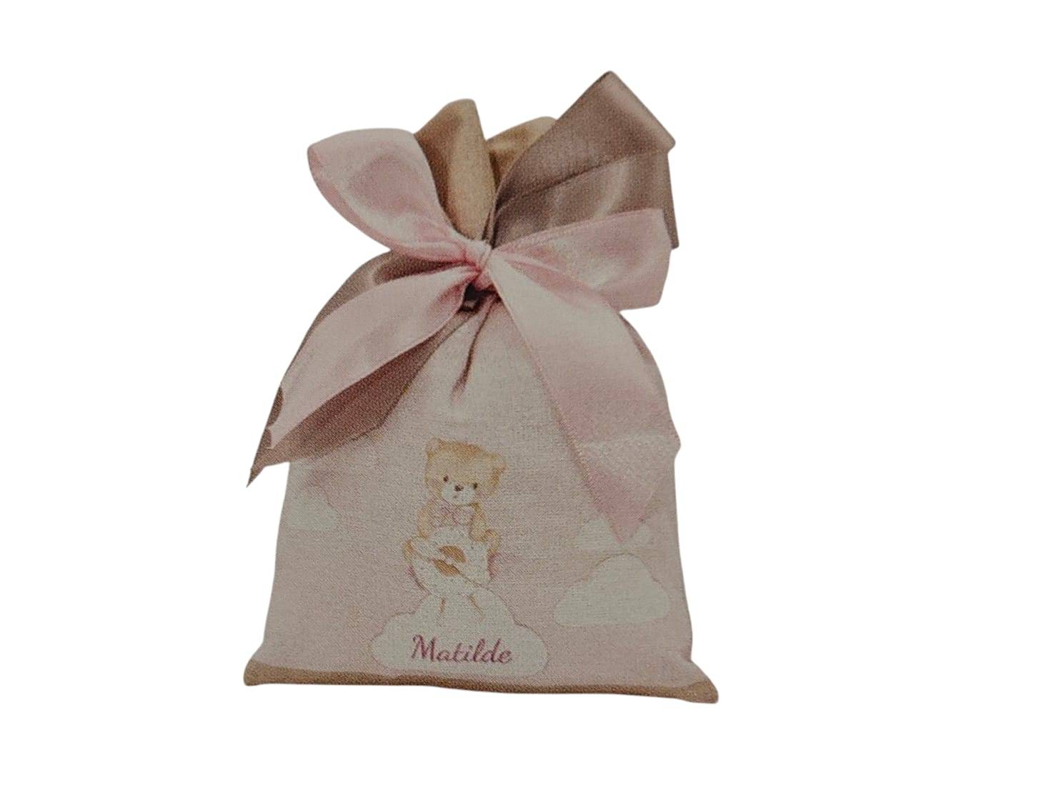 Sacchetto di cotone stampato personalizzato con il nome cm. 12 x 15 ORDINE MINIMO 20 PEZZI