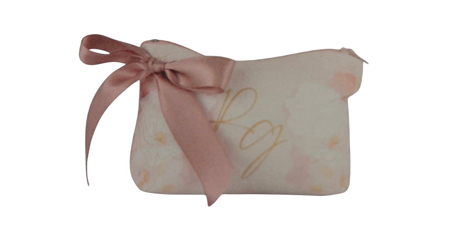 Sacchetto Matrimonio con cerniera di cotone stampato con iniziali sposi 13 x 10 x 5 completo di confetti