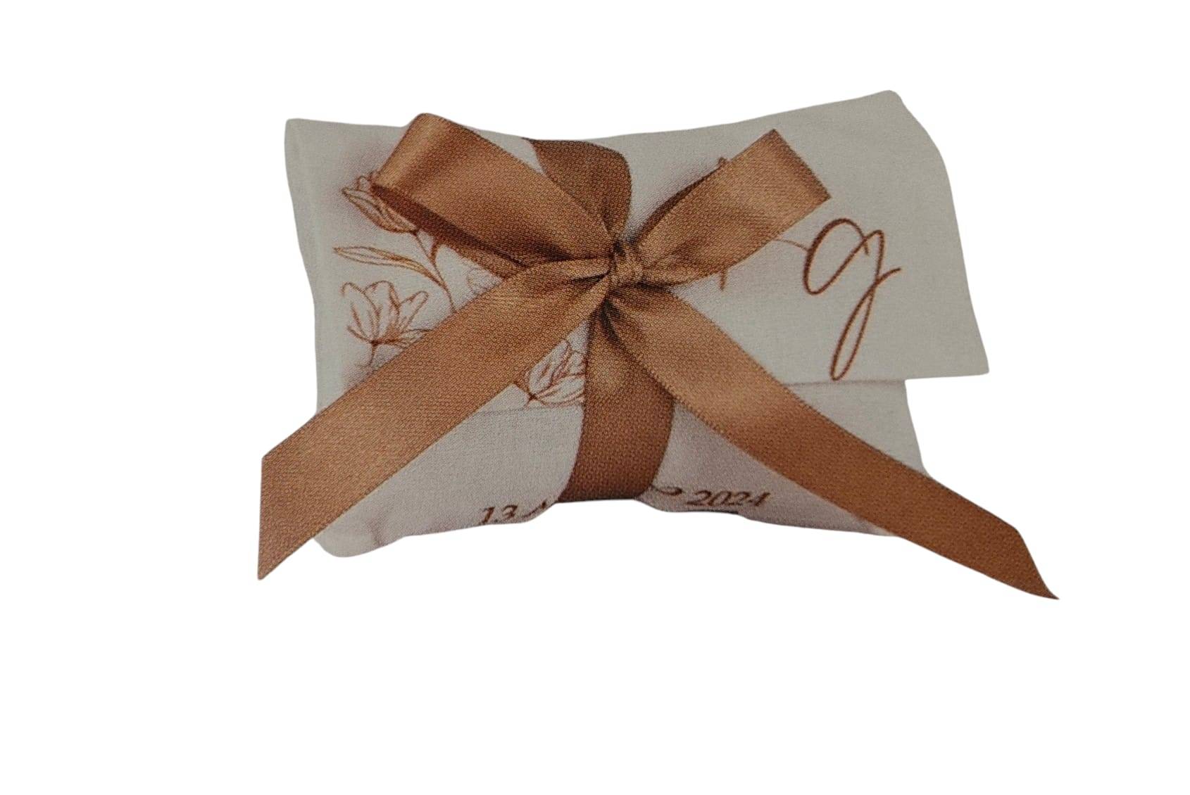 Bustina Matrimonio di cotone stampato con iniziali sposi 12 x 8 x 4,5 completo di confetti
