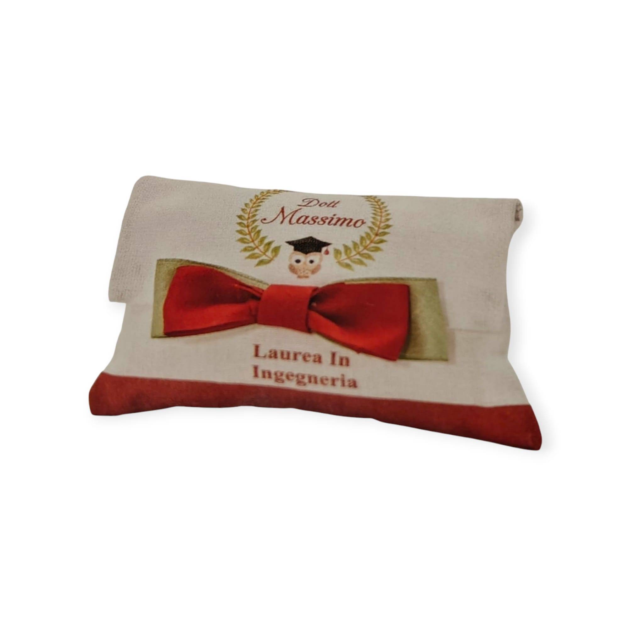Bustina di cotone laurea stampato personalizzato con il nome cm. 12 x 8 x 4,5 ORDINE MINIMO 20 PEZZI