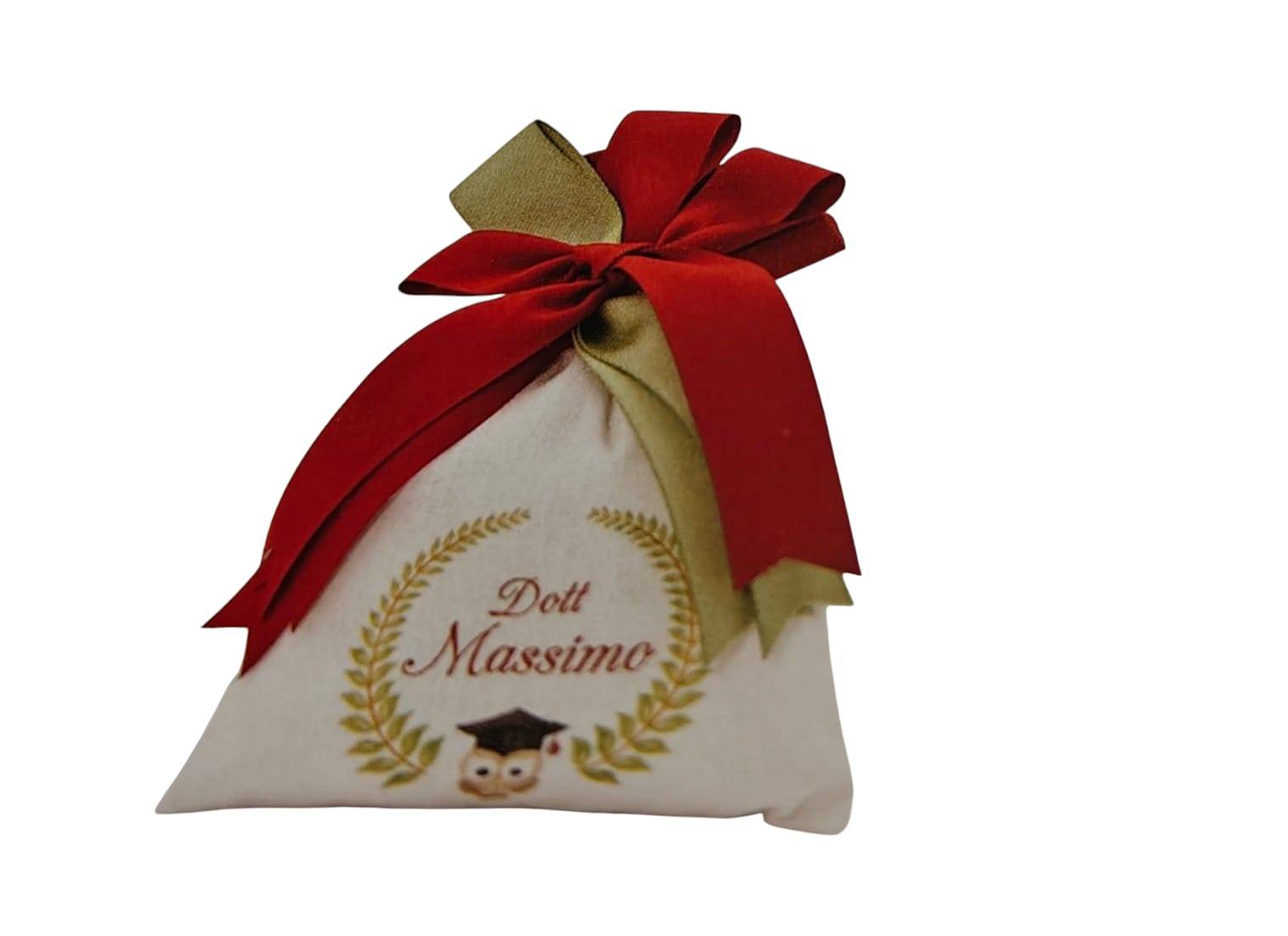 Sacchetto di cotone laurea stampato personalizzato con il nome cm. 10,5 x 15 x 5,5 ORDINE MINIMO 20 PEZZI
