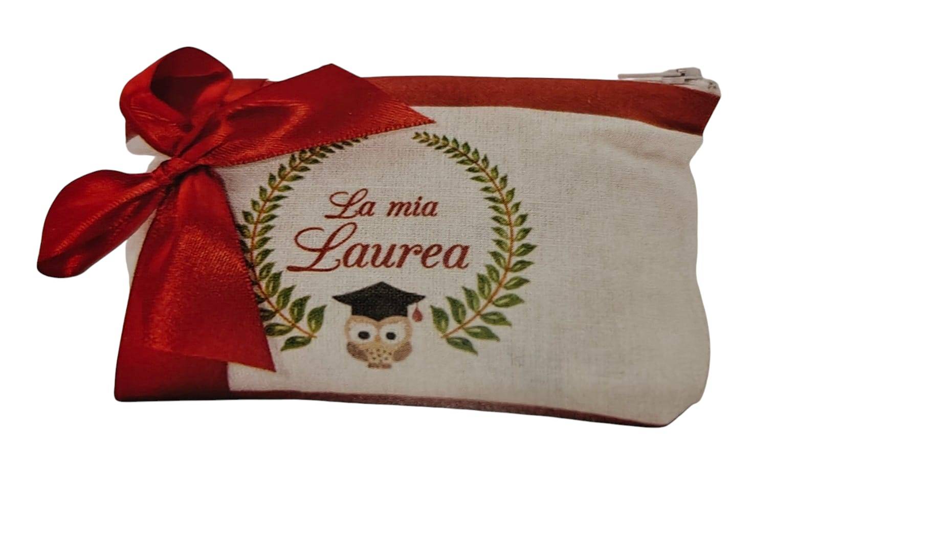 Bustina di cotone laurea stampato CON CERNIERA personalizzato con il nome cm. 14 x 9 x 4,5 ORDINE MINIMO 20 PEZZI