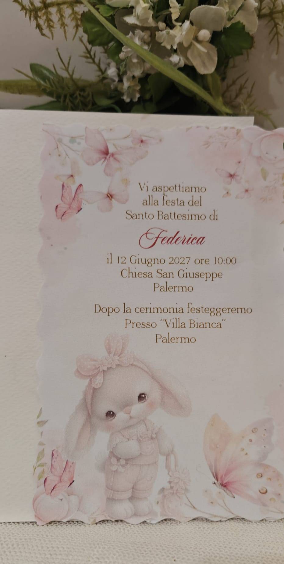 INVITO BATTESIMO BIMBA CONIGLIETTA