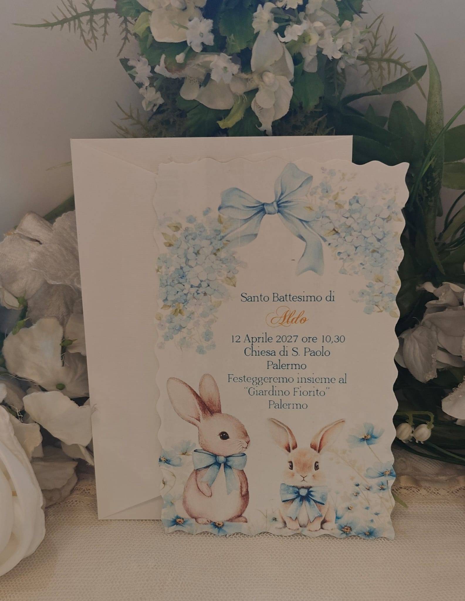 INVITO BATTESIMO BIMBA CONIGLIETTO
