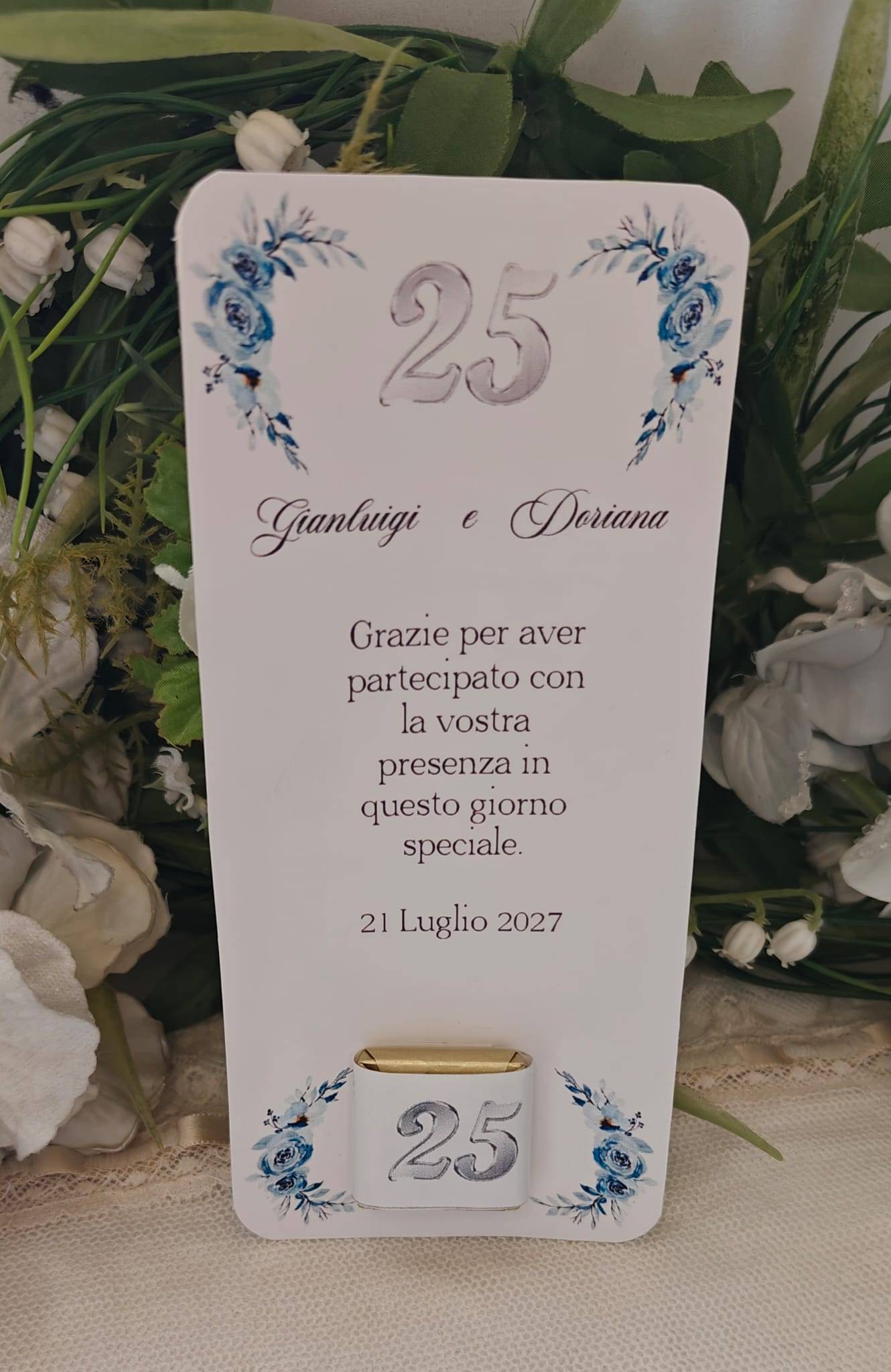 Segnaposto Nozze d'argento con cioccolatino