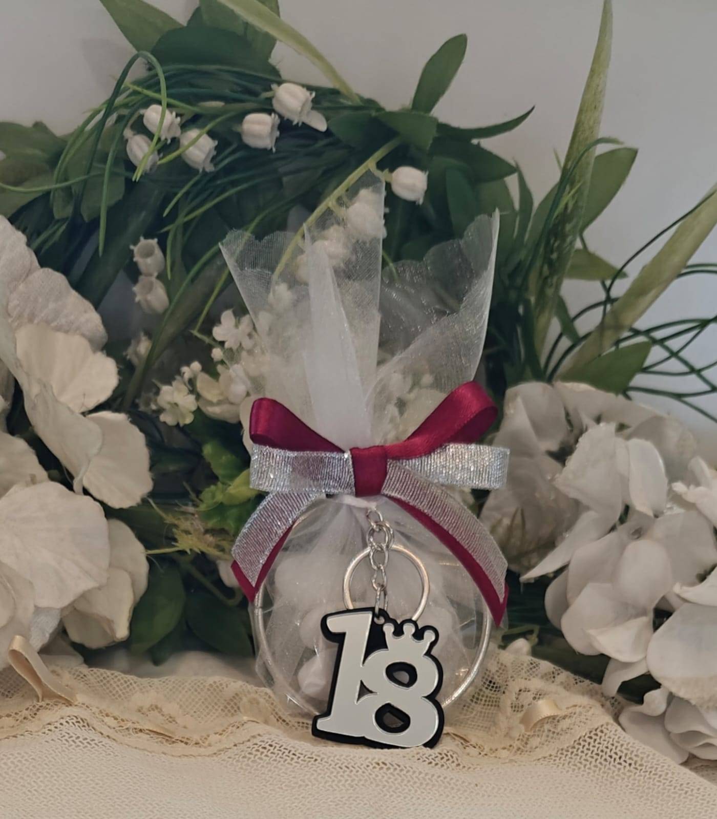 PORTACONFETTI ANELLO ARGENTO CON PORTACHIAVI 18° COMPLEANNO