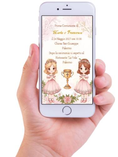 INVITO DIGITALE PRIMA COMUNIONE GEMELLE PRONTO IN 6 ORE
