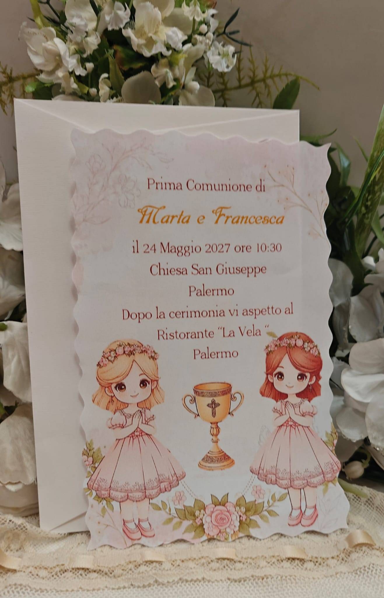 INVITO PRIMA COMUNIONE GEMELLE CON BUSTA
