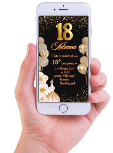 Invito Digitale 18 anni in formato digitale pronto da inviare ai vostri invitati tramite whatsapp, o email.