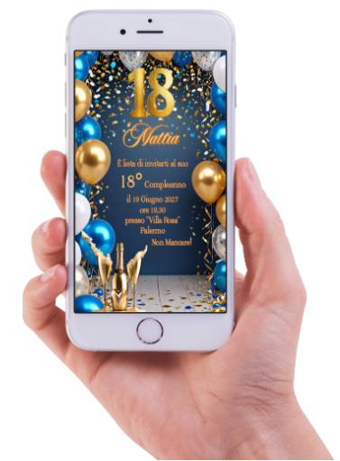 Invito Digitale 18 anni in formato digitale pronto da inviare ai vostri invitati tramite whatsapp, o email.
