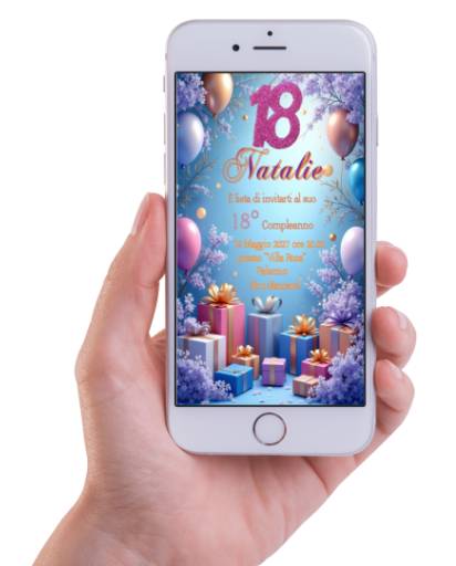 Invito Digitale 18 anni in formato digitale pronto da inviare ai vostri invitati tramite whatsapp, o email.