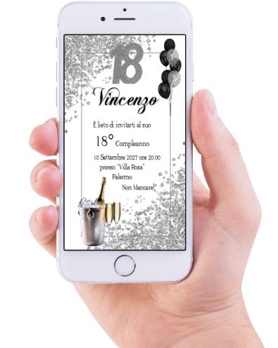 Invito Digitale 18 anni in formato digitale pronto da inviare ai vostri invitati tramite whatsapp, o email.