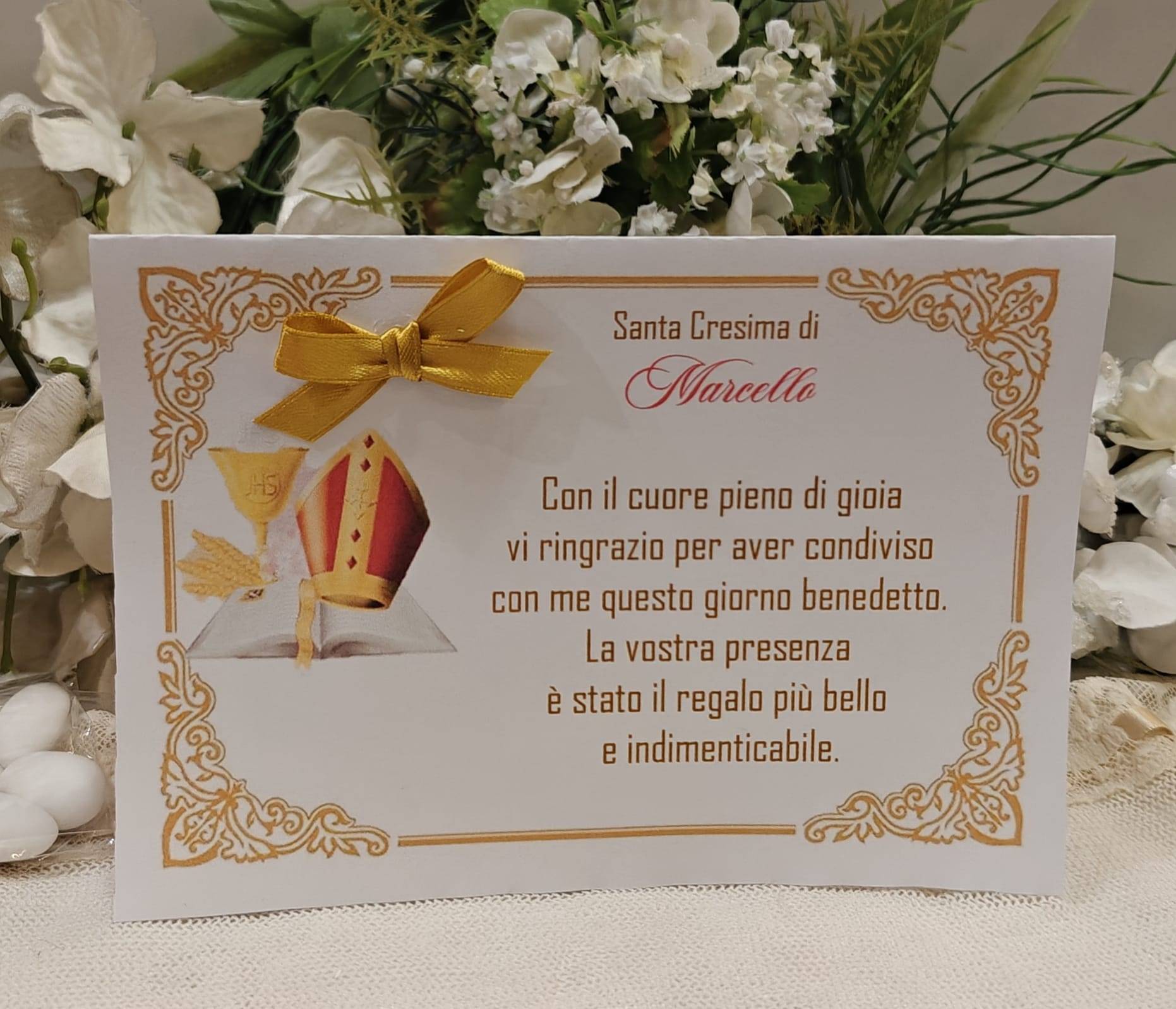 Ringraziamento personalizzato Cresima con pensierino da posizionare nella location dove festeggiate le vostre ricorrenze come segnaposto si può aggiungere anche il nome degli invitati.