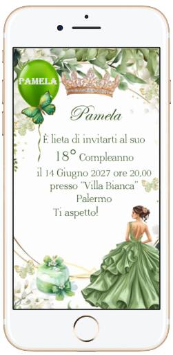 Invito Digitale 18 anni in formato digitale pronto da inviare ai vostri invitati tramite whatsapp, o email.