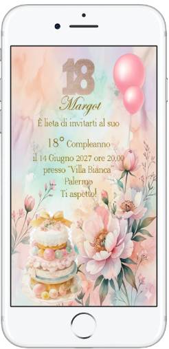 Invito Digitale 18 anni in formato digitale pronto da inviare ai vostri invitati tramite whatsapp, o email.