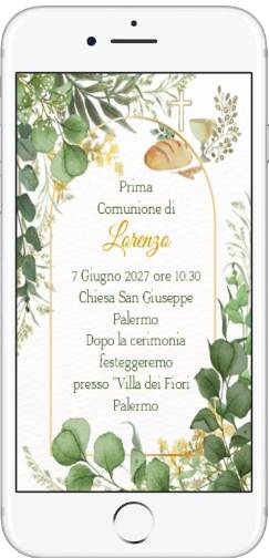 Invito Prima Comunione formato digitale pronto da inviare ai vostri invitati tramite whatsApp, o email.