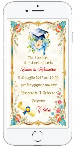 Invito Laurea formato digitale pronto da inviare ai vostri invitati tramite whatsApp, o email.