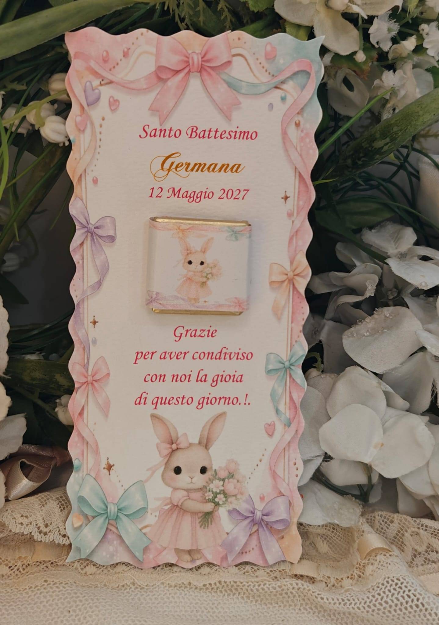 Segnaposto Battesimo Coniglietta con cioccolatino