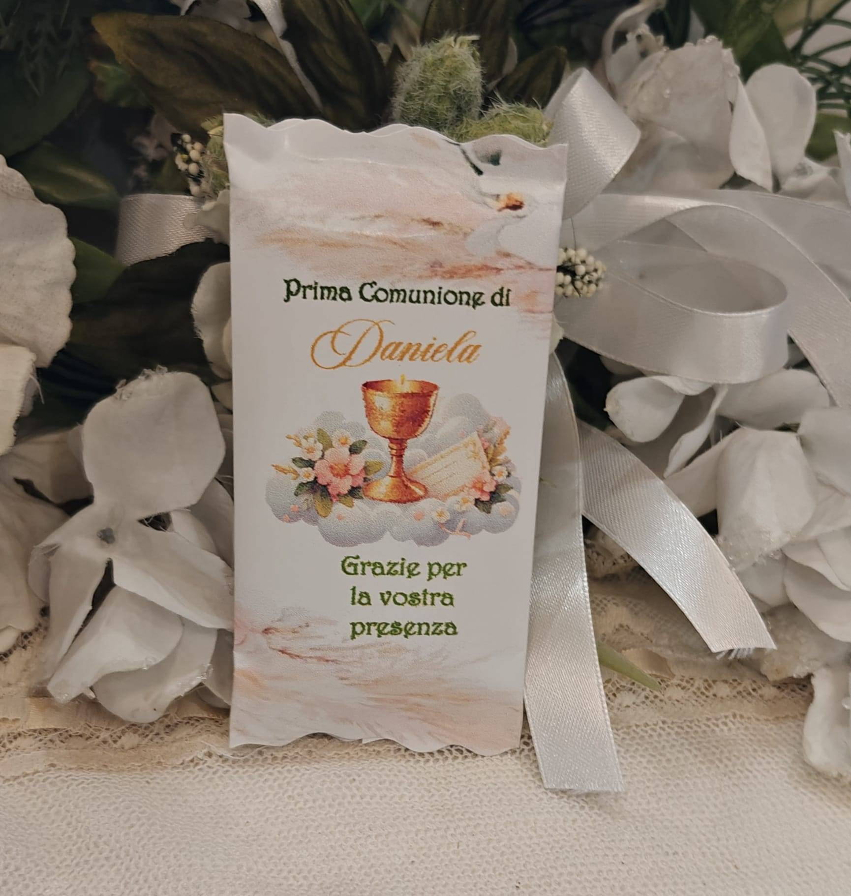 Segnaposto Prima Comunione barretta di cioccolato da posizionare sopra il tovagliato nella location dove festeggiate le vostre ricorrenze come segnaposto si può aggiungere anche il nome degli invitati.