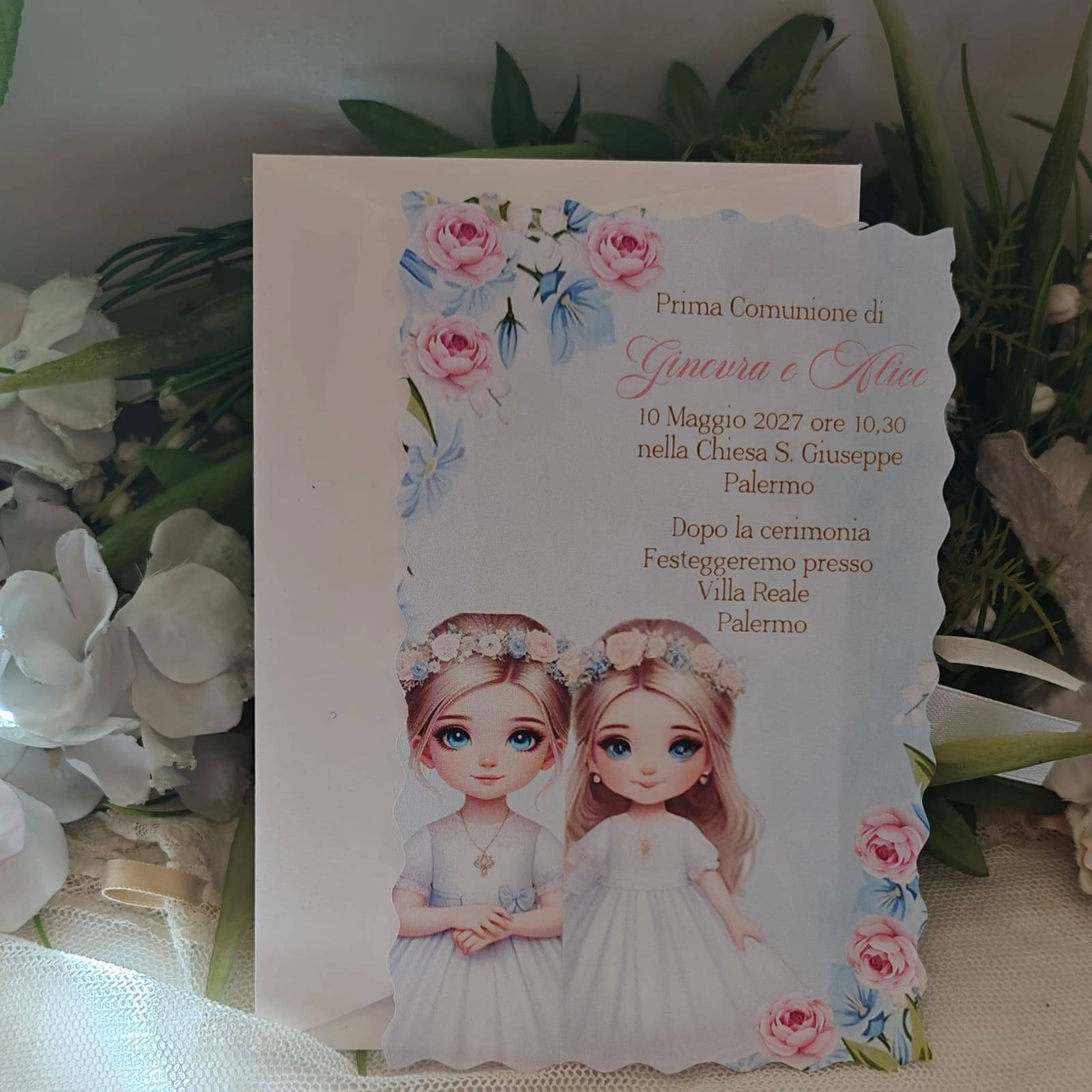 INVITO PRIMA COMUNIONE GEMELLE OCCHI AZZURRI