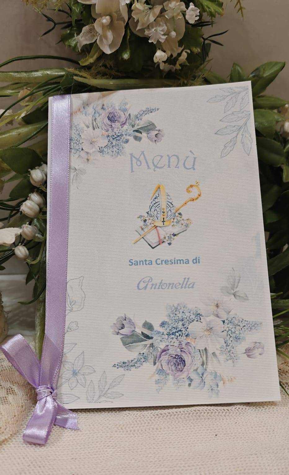 il cono per confettata, il Tableau con i segna tavoli, Menù, Guest book, segna gusti