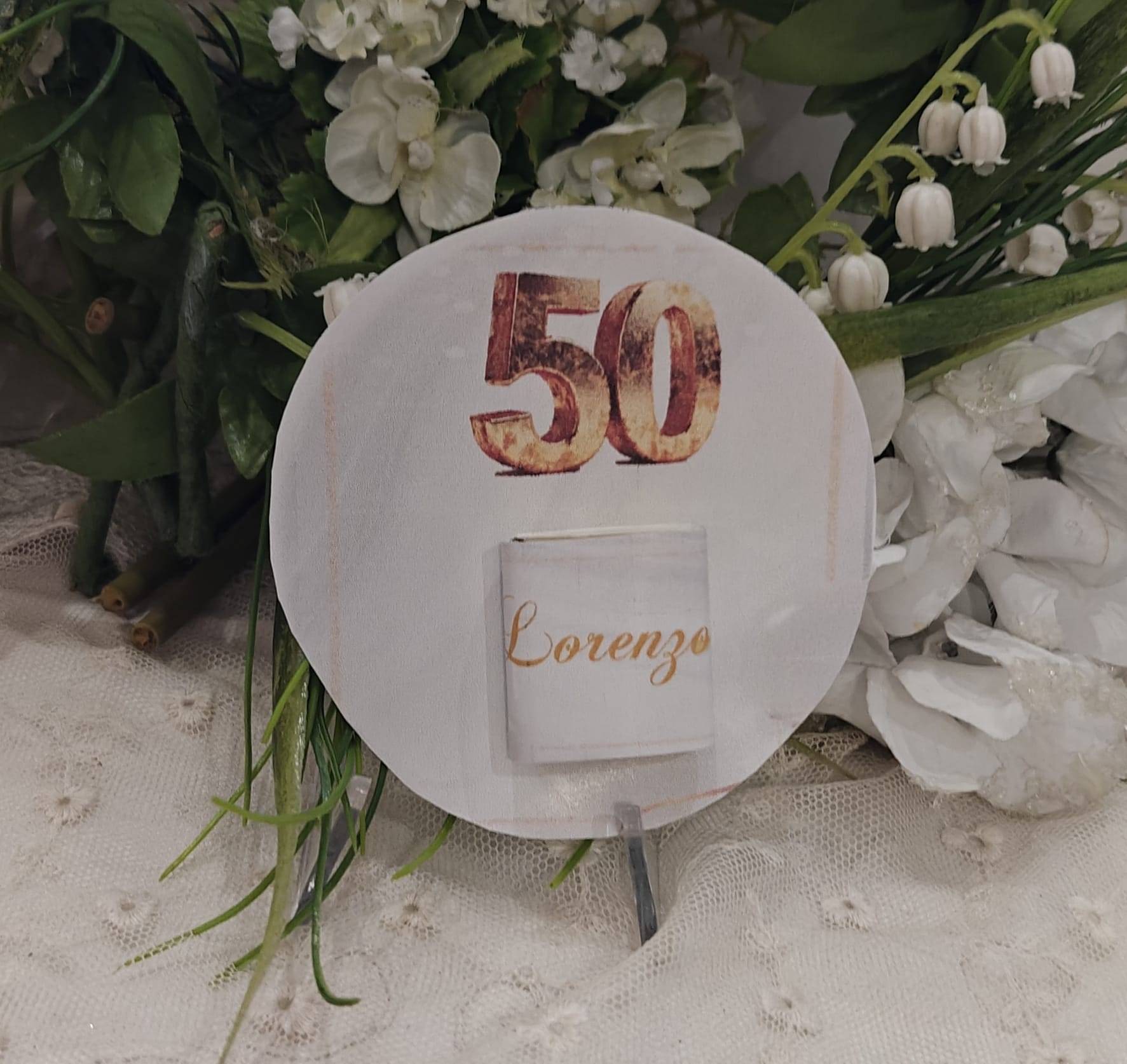 Invito personalizzato Compleanno 50 anni. Realizzato in cartoncino martellato gr. 200.