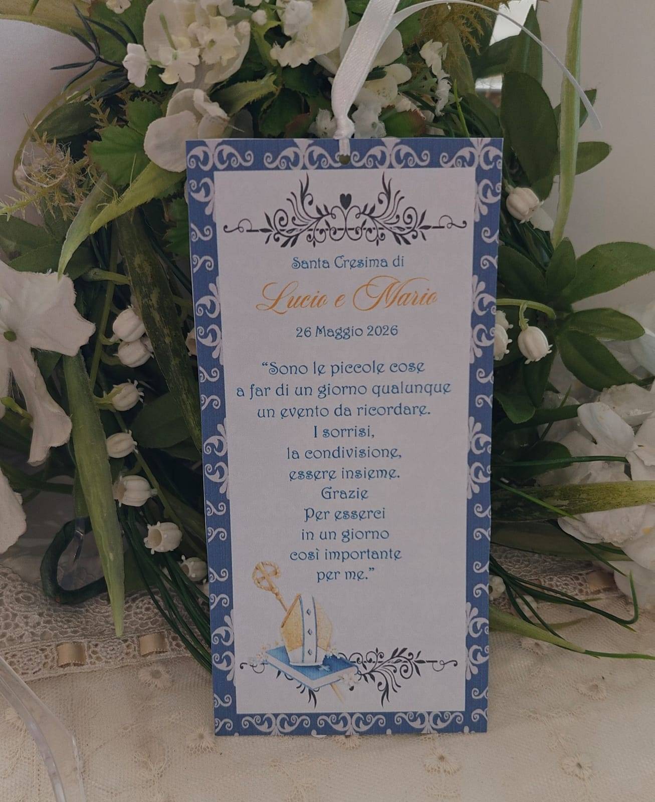 Dopo aver effettuato il pagamento con un messaggio comunicate il nome e cognome del festeggiato, data e ora della cresima,