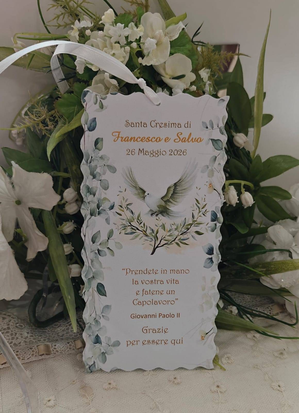 Dopo aver effettuato il pagamento con un messaggio comunicate il nome e cognome del festeggiato, data e ora della cresima,