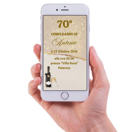 Invito Digitale 70 anni in formato digitale pronto da inviare ai vostri invitati tramite whatsapp, o email.