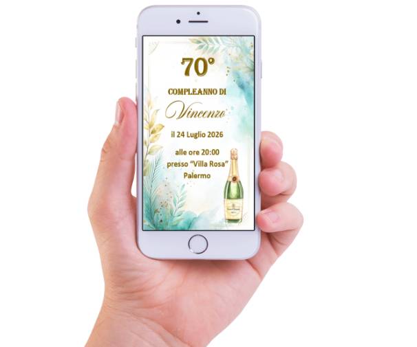 Invito Digitale 70 anni in formato digitale pronto da inviare ai vostri invitati tramite whatsapp, o email.