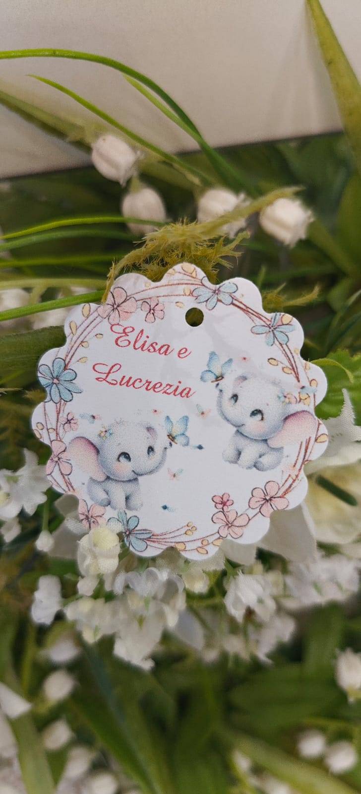Bigliettino rotondo personalizzato per nascita da attaccare al sacchettino