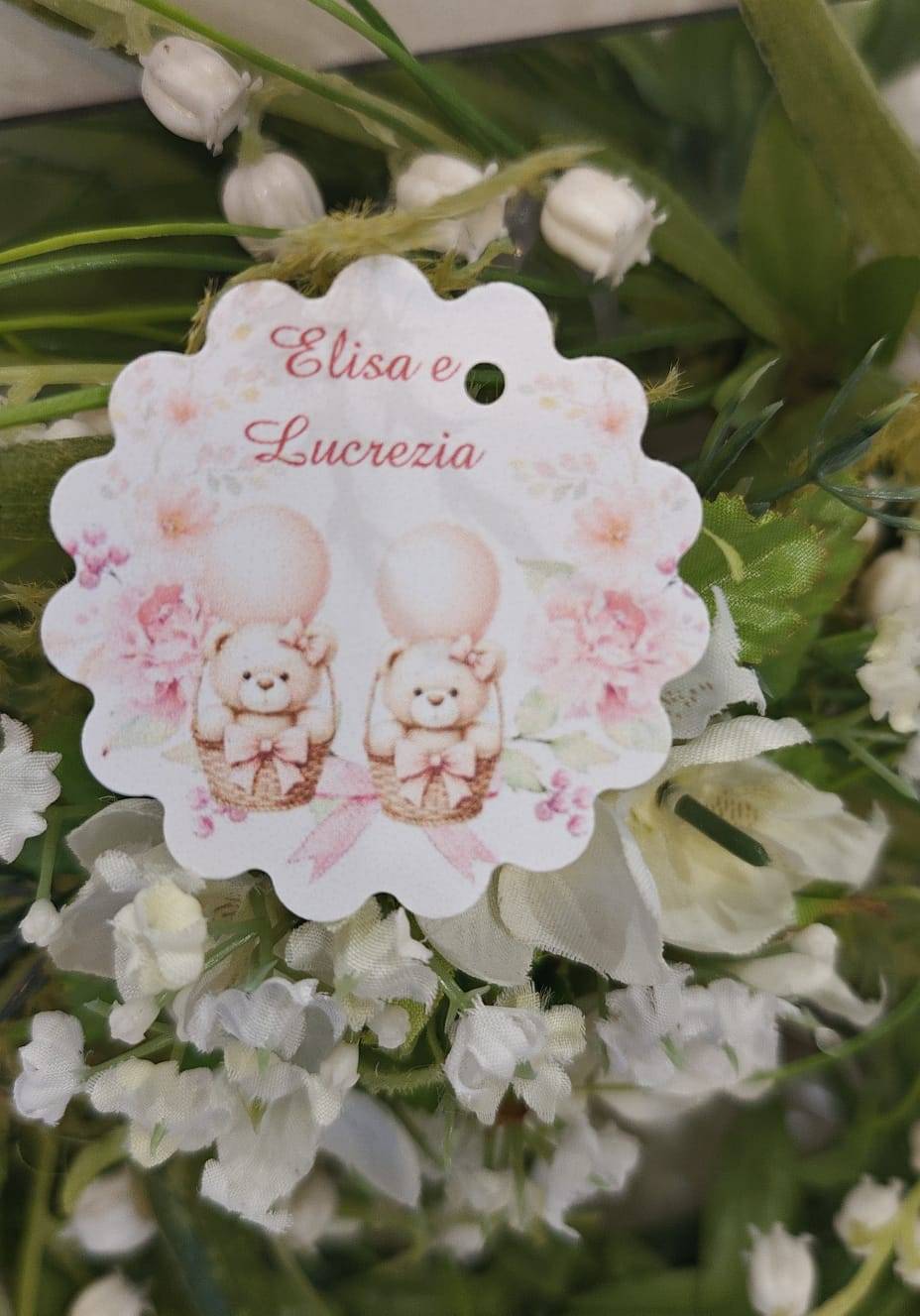 Bigliettino rotondo personalizzato per nascita da attaccare al sacchettino