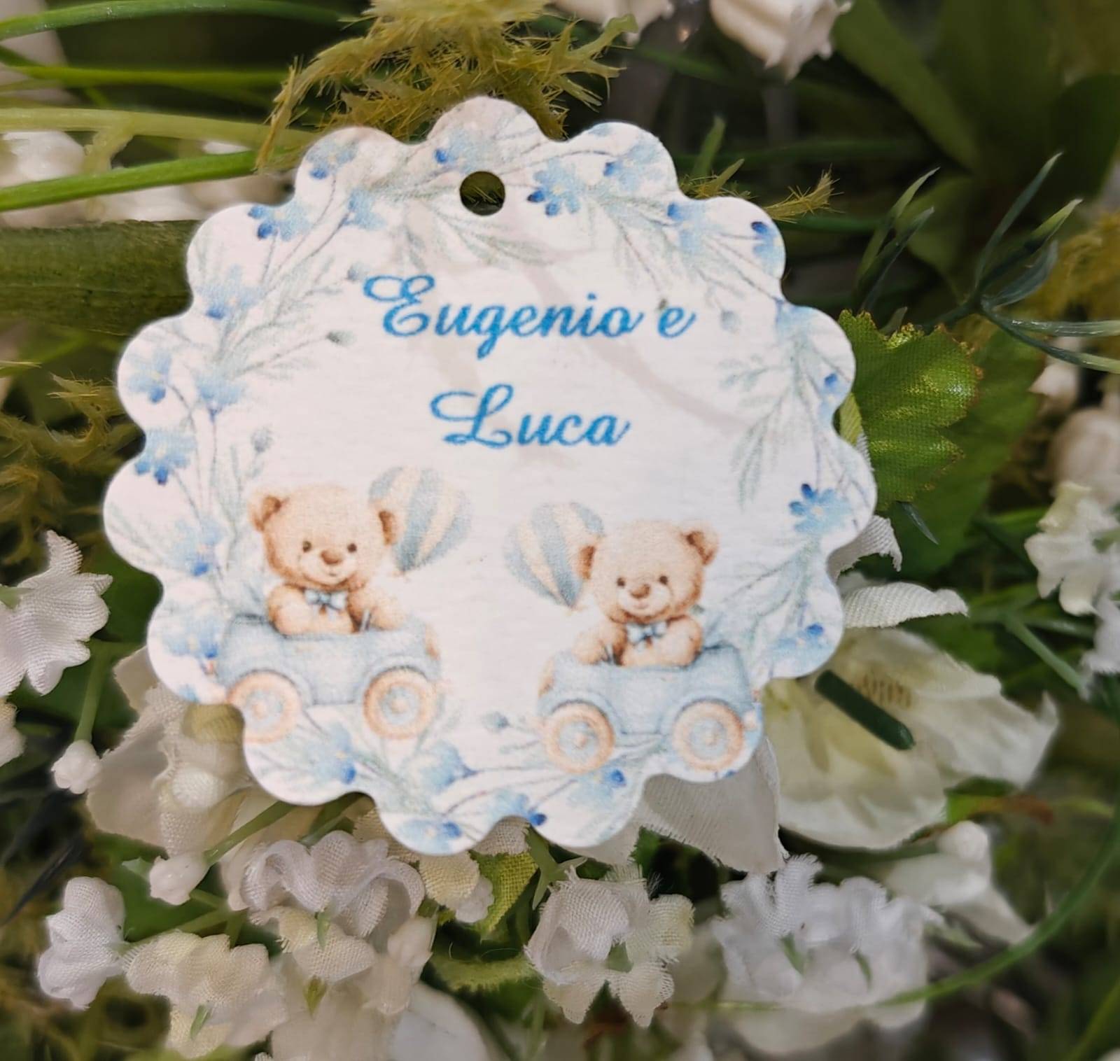 Bigliettino rotondo personalizzato per nascita da attaccare al sacchettino