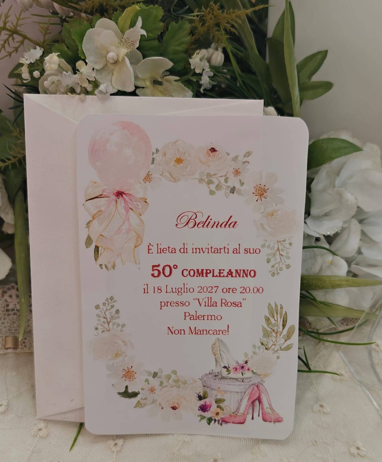 Invito personalizzato Compleanno 50 anni. Realizzato in cartoncino martellato gr. 200.