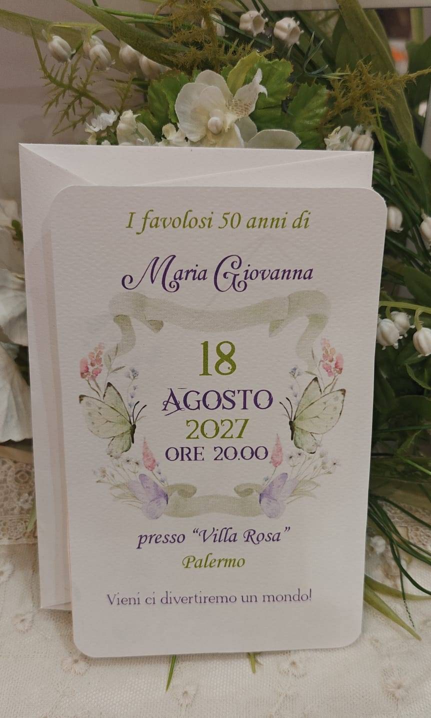 Invito personalizzato Compleanno 50 anni. Realizzato in cartoncino martellato gr. 200.