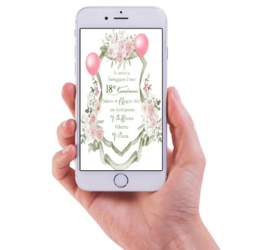Invito Digitale 18 anni in formato digitale pronto da inviare ai vostri invitati tramite whatsapp, o email.