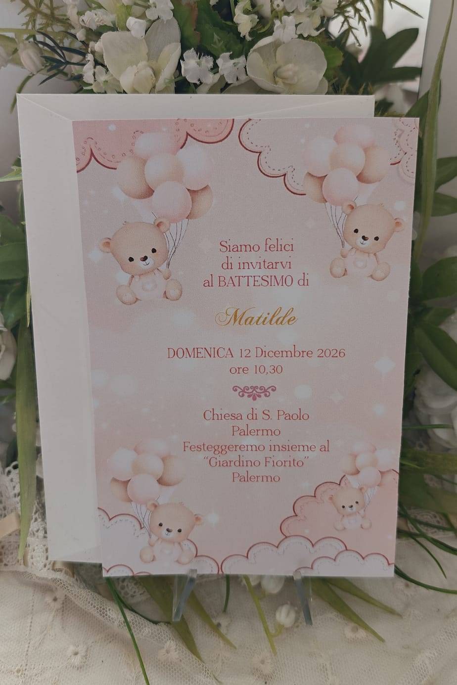 INVITO BATTESIMO ORSETTO CON BUSTA