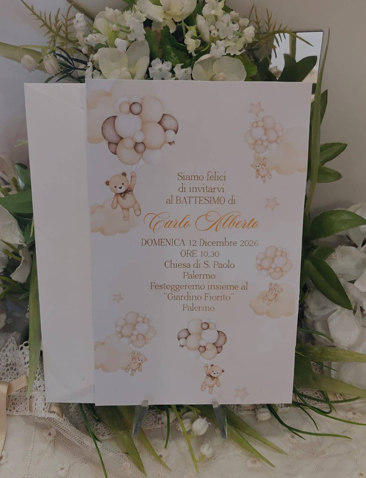 INVITO BATTESIMO ORSETTO CON BUSTA