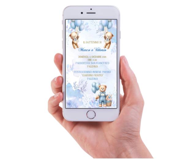 Invito Battesimo formato digitale pronto da inviare ai vostri invitati tramite whatsApp, o email.