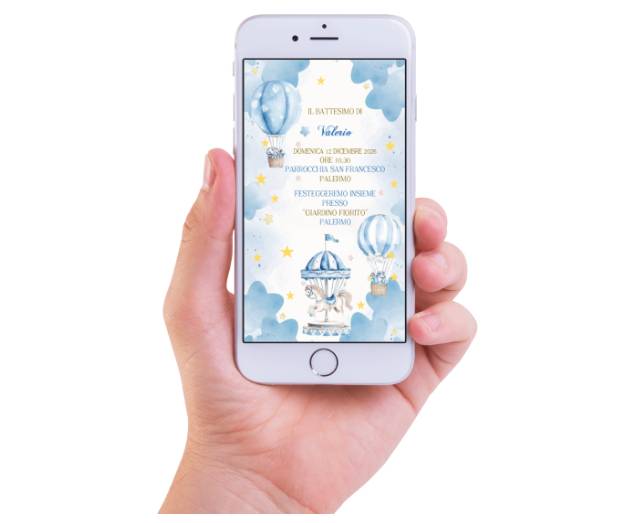 Invito Battesimo formato digitale pronto da inviare ai vostri invitati tramite whatsApp, o email.