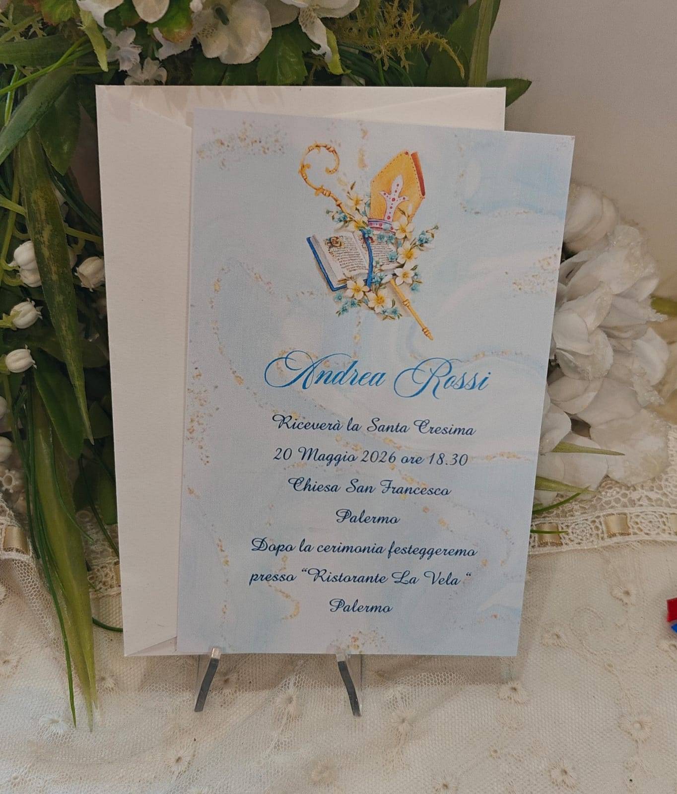 Personalizza il tuo invito come desideri. Una volta scelto l'articolo, potrai richiedere modifiche e personalizzazioni che rispecchiano appieno i tuoi gusti. Dai colori accattivanti al tema specifico o al carattere del testo, rendi il tuo invito veramente unico e speciale.