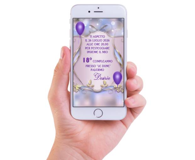 Invito Digitale 18 anni in formato digitale pronto da inviare ai vostri invitati tramite whatsapp, o email.