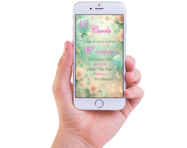Invito Digitale 18 anni in formato digitale pronto da inviare ai vostri invitati tramite whatsapp, o email.